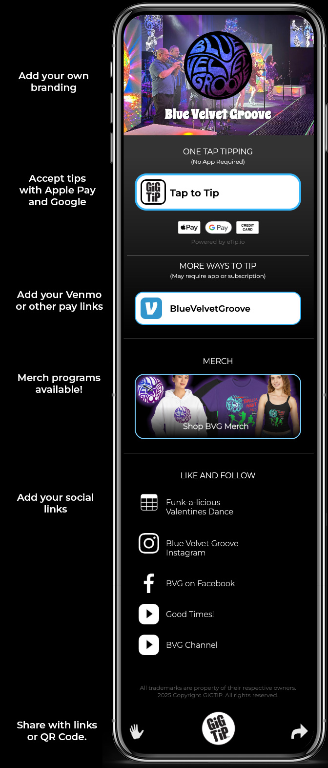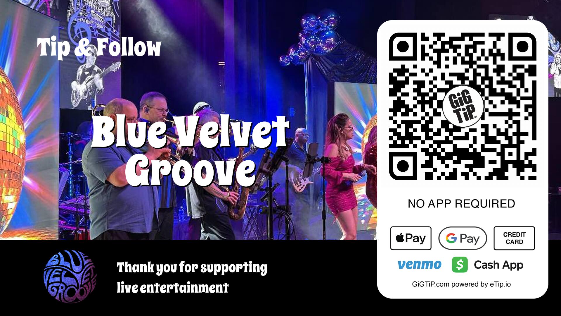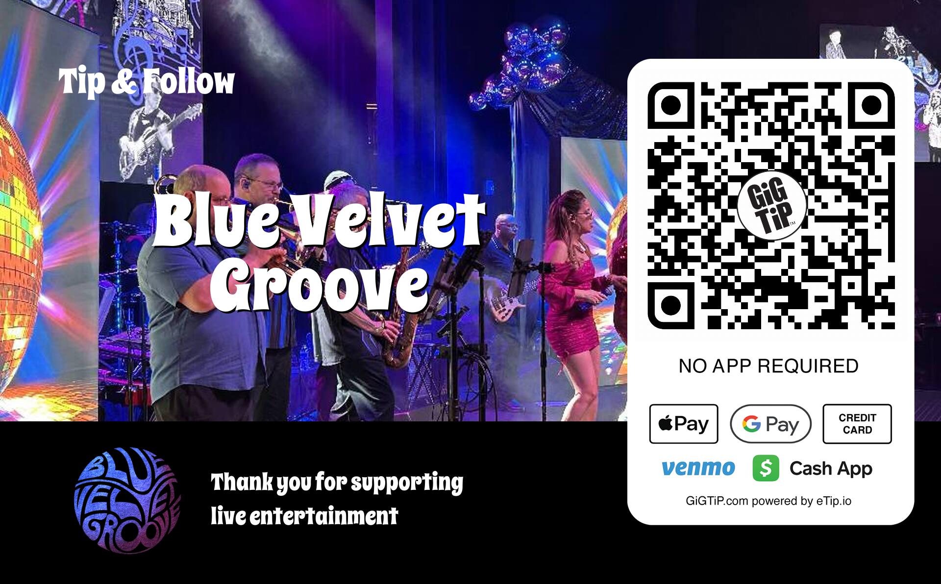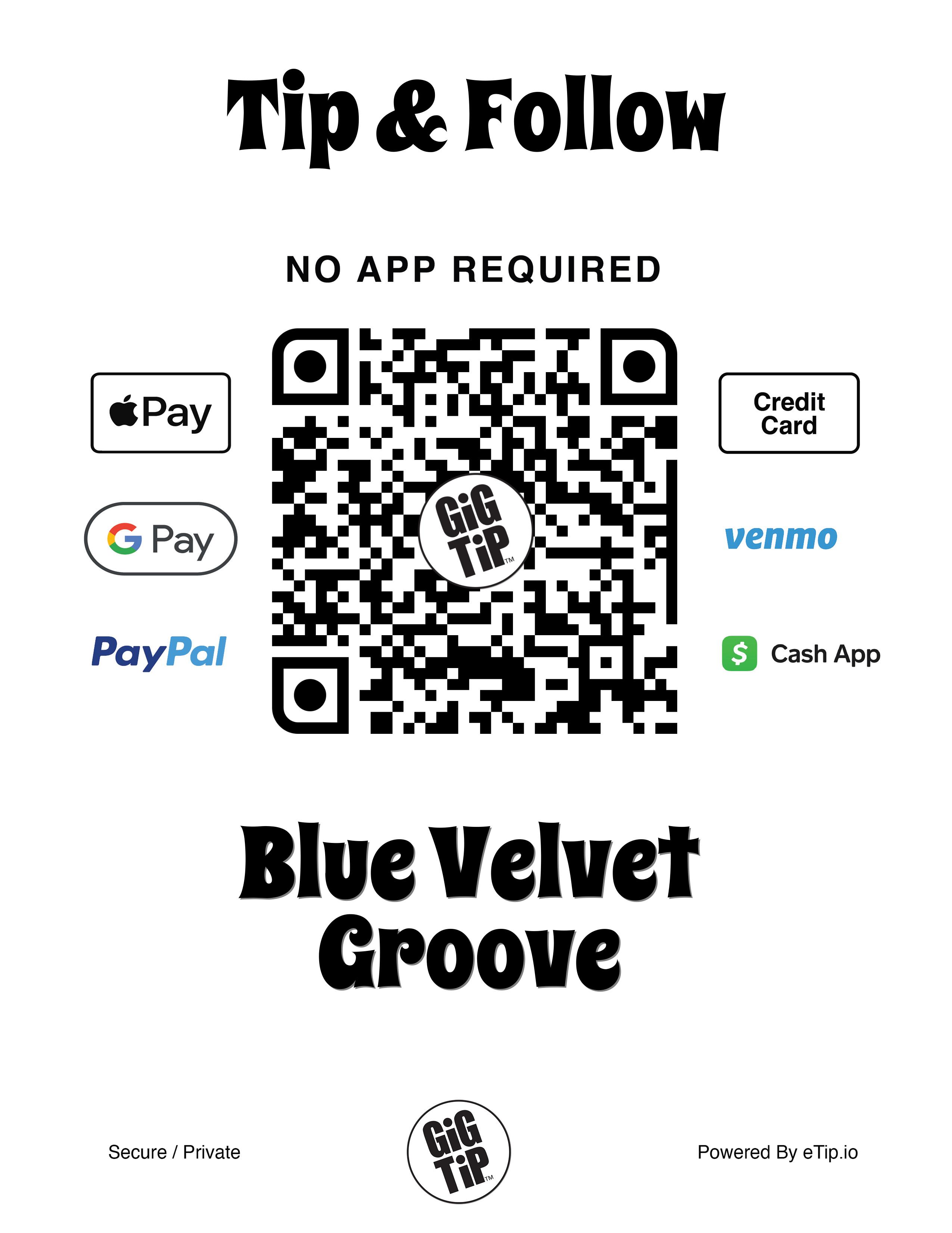 As a pioneering performer on GiGTiP, Blue Velvet Groove has helped shape GiGTiP to increase traffic to all social accounts, gain followers organically, and maximize tip opportunities during every performance.